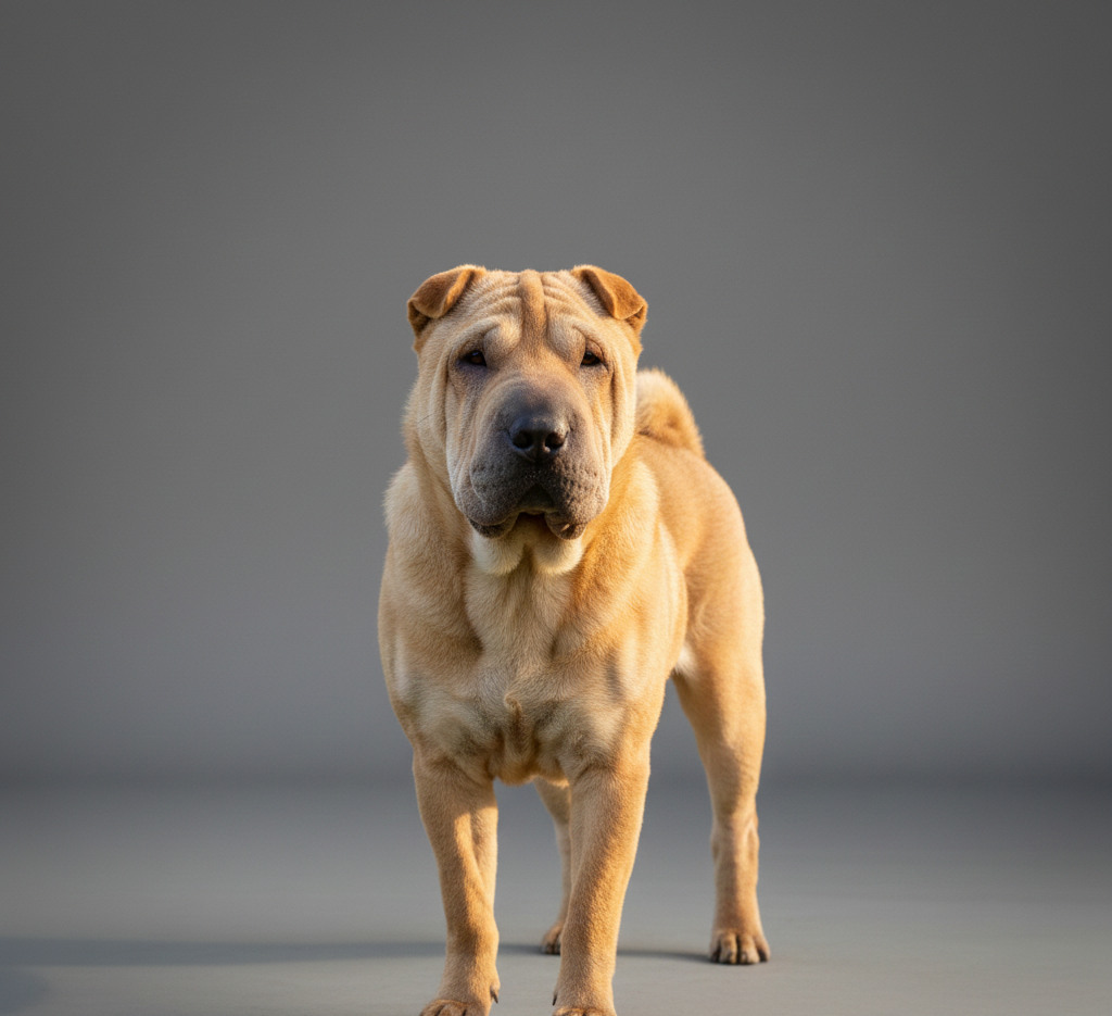 샤페이의 가장 큰 특징은 얼굴과 온몸에 자리한 깊고 단단한 주름입니다. 특히 어린 개체일수록 주름이 많으며, 성견이 되면 몸의 주름이 다소 줄어드는 대신 얼굴의 독특한 표정이 강조됩니다. 짧고 뻣뻣한 '사포 같은 모질'은 피부를 보호하는 역할을 해 외부 자극에 강한 편입니다. 귀는 작고 두꺼우며 삼각형 형태로 접혀 있어 머리 전체와 조화를 이루고, 꼬리는 말려 올라가는 형태로 등 위에 자리합니다. 중형견으로 체구는 탄탄하고 근육질이며, 눈은 가늘고 깊게 자리해 차분하고 지적인 인상을 줍니다. 외모적 특징은 단순히 독특한 생김새를 넘어서 과거 사냥과 경비 업무에 적합하도록 진화한 결과라고 볼 수 있습니다.