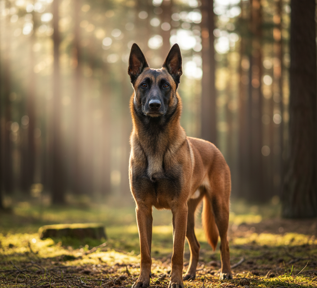 벨지안 셰퍼드 말리노이즈는 가볍고 균형 잡힌 몸 구조를 갖춘 중형견으로, 강한 근육과 탄탄한 체격이 특징입니다. 몸통은 길지 않고 적당히 압축된 형태여서 기동성과 속도를 높이는 데 유리합니다. 얼굴은 검은 마스크가 두렷하게 자리하며, 삼각형 형태의 귀는 곧게 서 있어 날카롭고 민첩한 인상을 줍니다. 털은 짧고 곧은 단모로 관리가 쉽고 활동성이 높은 환경에서도 오염과 열에 강한 편입니다. 전체적으로 말리노이즈는 빠른 반응과 민첩성을 위해 최적화된 외형을 지녔으며, 군겨과 경찰견의 전형적인 모습으로 널리 알려져 있습니다. 눈빛은 매우 집중력 강하고 날카로워, 경계심과 상황 판단력이 높은 품종의 특성이 시각적으로 드러나는 견종입니다.